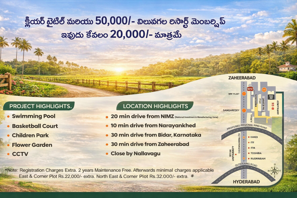 🛣️ 1.5 Hours from Patanchervu ORR – Seamless connectivity to major highways.